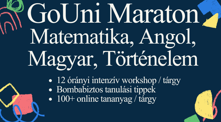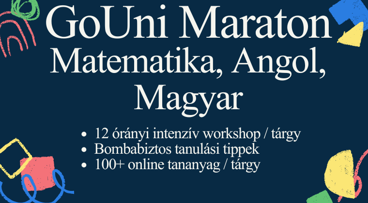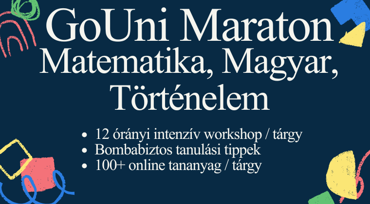 TanfolyamA GoUni Maraton mindent megad, hogy kimaxold az érettségit: 12 órányi intenzív, interaktív workshop, számológép használata, matekos trükkök bemutatása, típusfeladatok gyakorlása, témakörök bemutatása, oktató videók.
