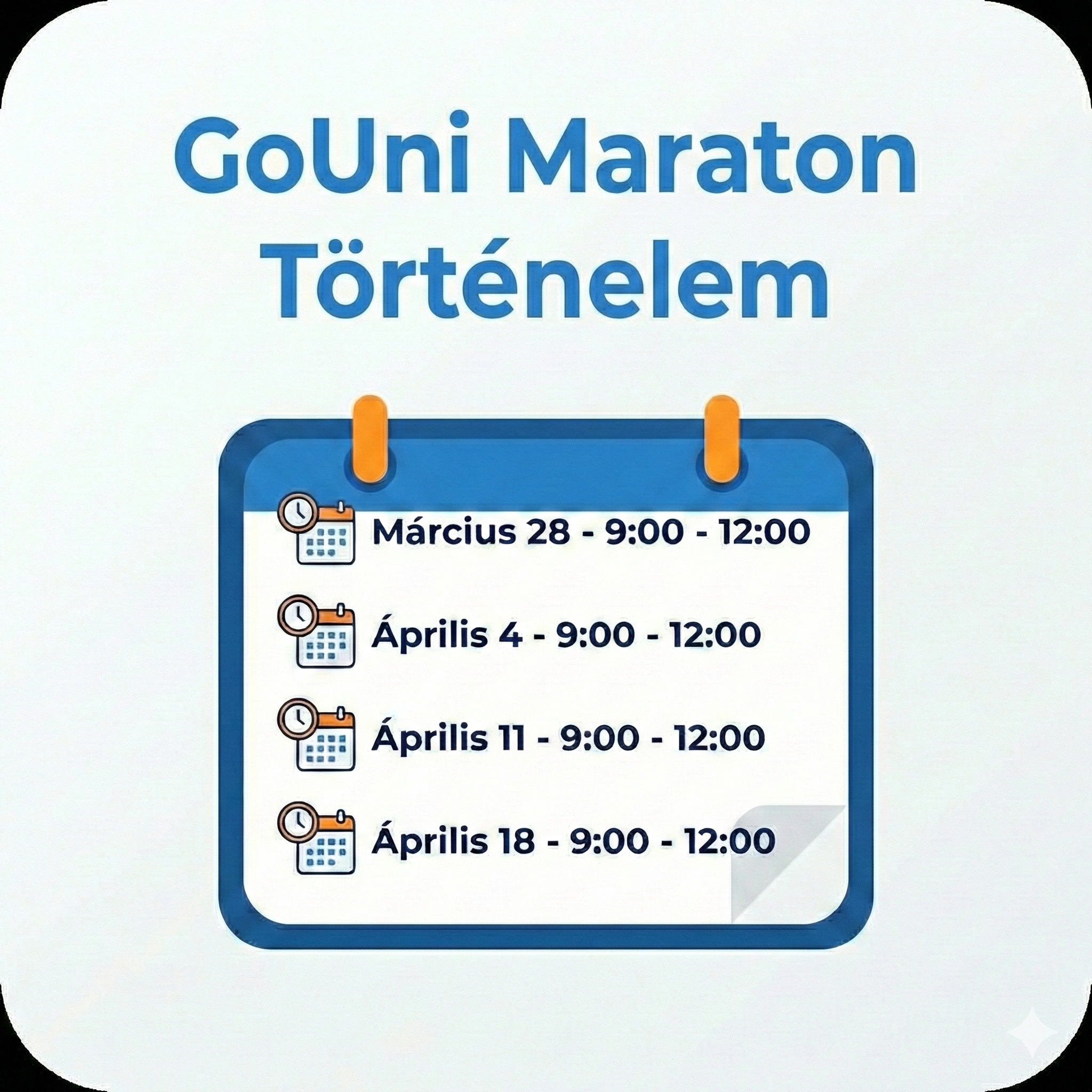 Hozd ki a maximumot az érettségiből a GoUni Maraton-nal! 4 intenzív hétvégi alkalom, plusz napi 10 perc a videós és interaktív anyagainkkal – csupán ennyi kell, hogy felkészült és magabiztos legyél! Így akár 2-3 jeggyel is jobbat írhatsz az érettségin.